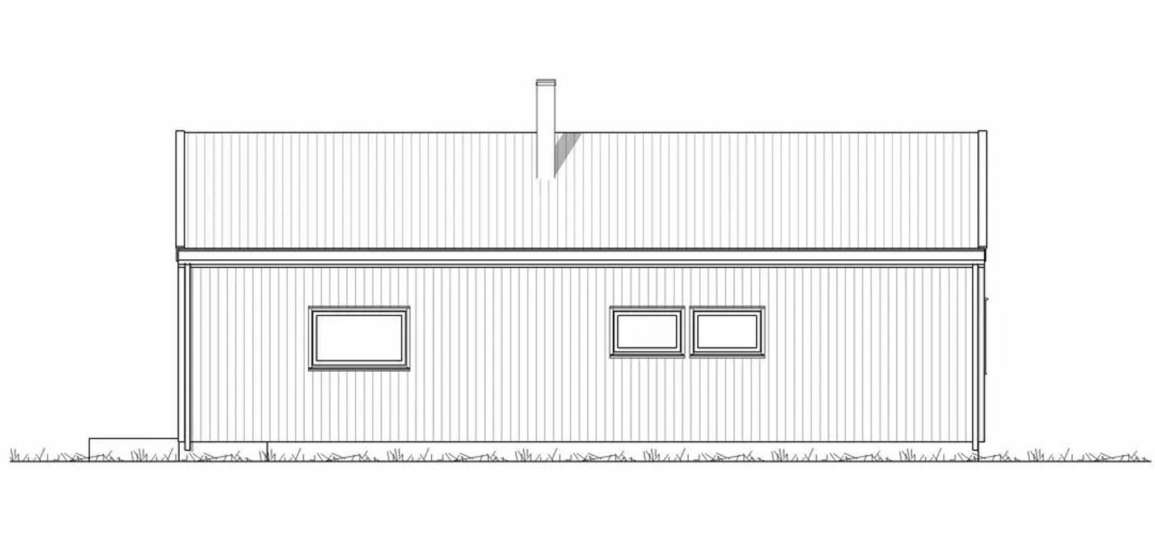 Spiseplass ligger i nær tilknytning til kjøkkenet og gavlveggen med store, høye vinduer og utgang til uteplassen i sør. Ildstedet er sentralt plassert i hoveddelen og kan nytes fra hele oppholdsrommet.