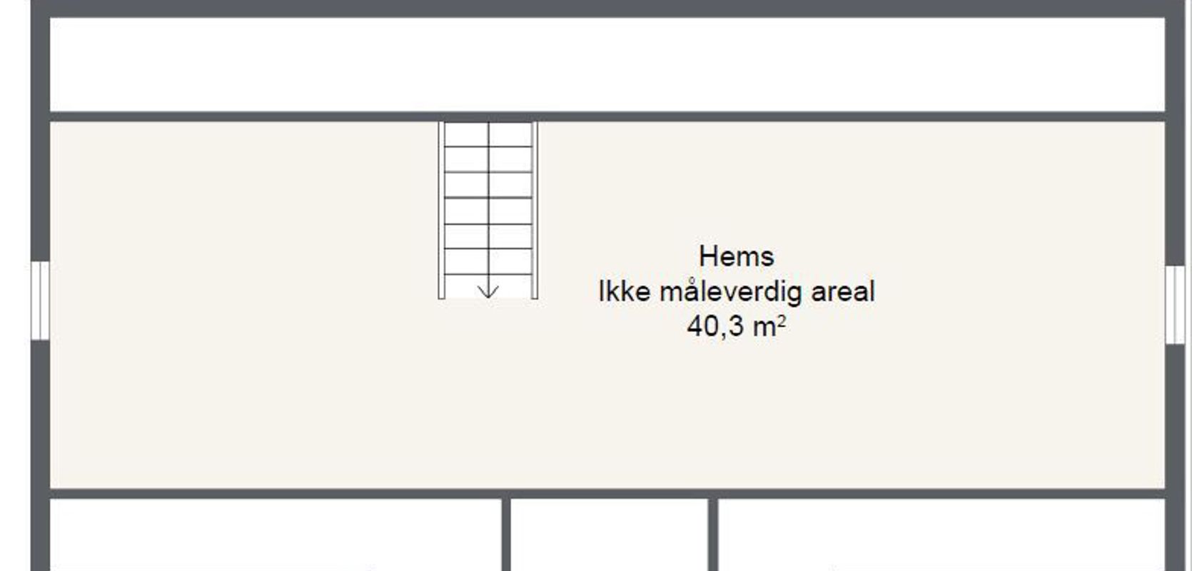 En trapp fra inngangspartiet fører opp til en romslig hems. Med riktig innredning i andre etasje kan du sikre at det er god plass til overnatting ved behov. Du kan for eksempel dele hemsområdet inn i to separate sovealkover og et ekstra oppholdsrom. Dette gir en flott løsning for gjester eller en privat sone for de som ønsker å trekke seg tilbake og ha litt egentid.