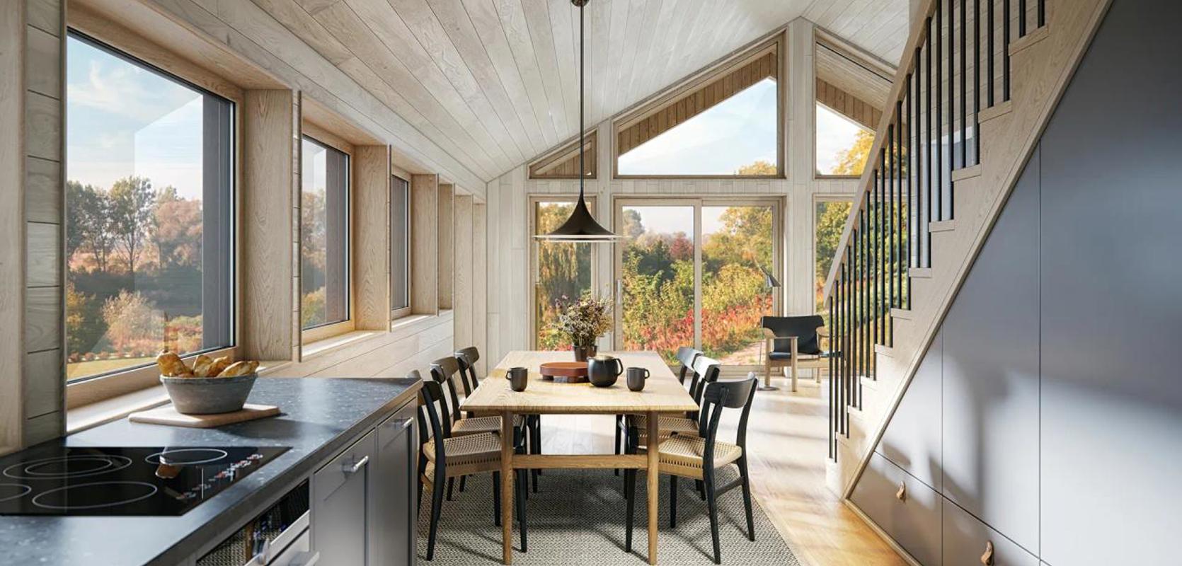 Skråtak med mønt himling gir ekstra takhøyde og en luftig følelse