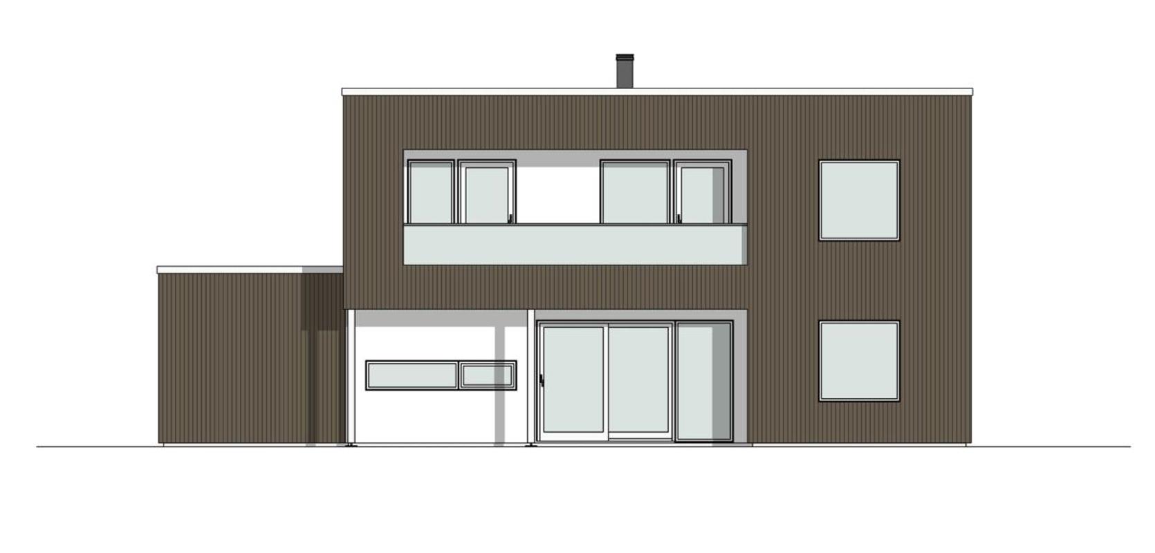 Drøbak er et moderne hus med en særegen fasade. De smale, stående trepanelene, glassrekkverk på balkonen og store vindusflater er med på å gi fasaden et uttrykk med særpreg. En blanding av vertikale og horisontale vinduer gir fine detaljer.