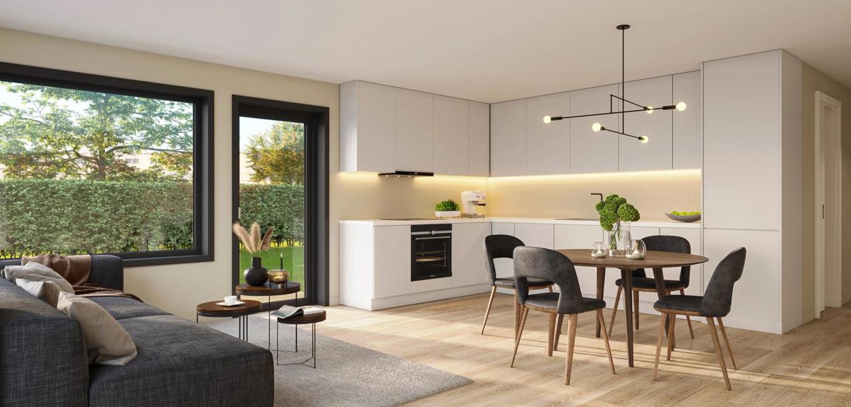 KVANT 2.0 har to soverom som begge er plassert i nærhet til bad og oppholdsrom. Hovedsoverommet har plass til dobbeltseng og garderobe, mens det andre rommet egner seg like godt som barnerom, kontor eller gjesterom – alt etter behov og livssituasjon.
