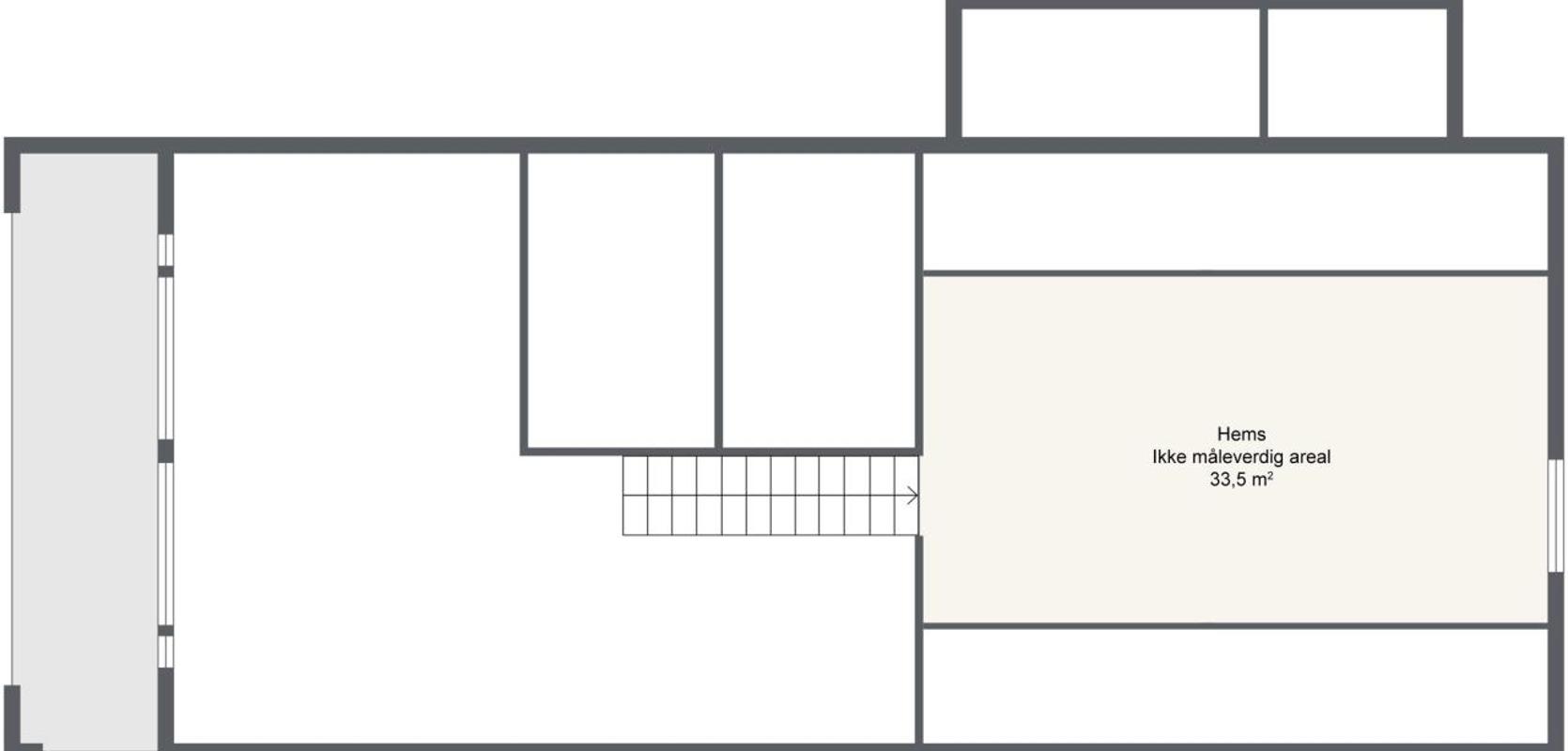 Trappen opp til hemsen har gode stigningsmål med inntrinn og opptrinn som gir ledig plass til enten et ekstra oppholdssted eller som lagring under trappen.